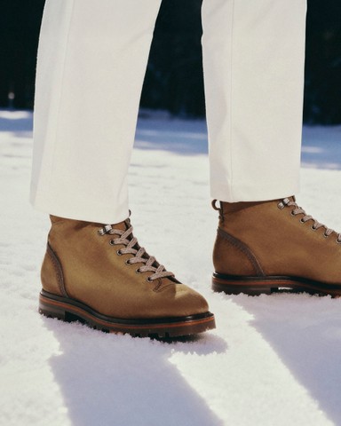 Ruggedly refined hiking-inspired boots crafted in handsome leathers and soft shearling along with masterful leather weekend bags balance modernity and artisanal depth.