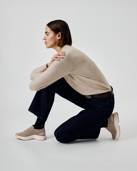 The Easy Bounce sneaker marries a supportive running-inspired design with Santoni’s artisanal savoir-faire. Its soft, lightweight suede construction is enriched with a thermoforming treatment: a unique pressing technique that emphasises the shoe’s iconic detailing. Styled with a chunky rubber sole and micro-perforations on the sides for elevated comfort and versatility.