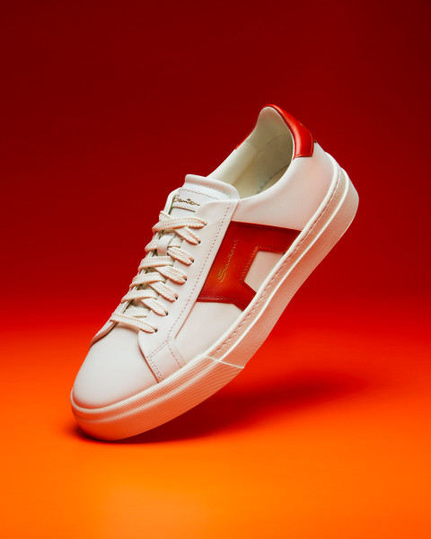 The Double Buckle Sneaker is a fusion of iconic Santoni codes. This style flaunts a sporty, supportive silhouette with a rubber cupsole that offers comfort and freedom of movement. Its premium-quality leather upper is enhanced with a double-buckle-shaped accent on the sides in hand-polished leather, paying homage to the brand’s artisanal heritage. Maxi lettering moulded into the tread completes the design, marking every stride with unmistakable style.