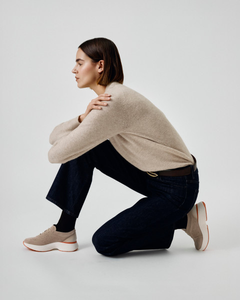 Supportive yet lightweight, the Easy Bounce sneaker combines laid-back charm and modern functionality with exceptional craftsmanship. This metallic leather iteration is enriched with a thermoforming treatment: a unique pressing technique that emphasises the shoe’s iconic detailing. Styled with a chunky rubber sole and micro-perforations on the sides for elevated comfort and versatility.