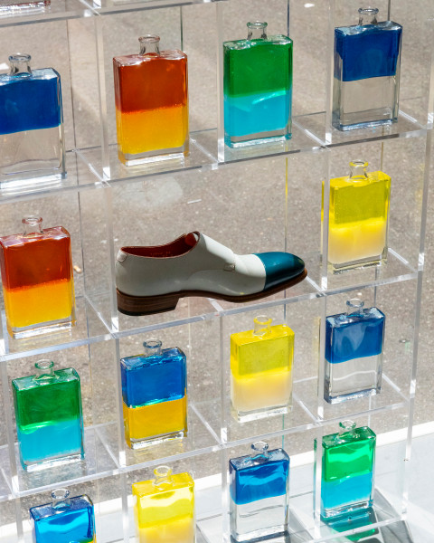 As poetic as a painter’s atelier – the installation consists of a tableau vivant where Masters of Beauty and their palette of colors unveil the secrets of Santoni’s ancient glazing technique, handed down from generation to generation by the guardians of this precious cultural heritage.