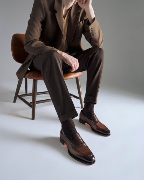 A tribute to the mastery of Italian craftsmanship and traditional techniques, handed down from generation to generation. This penny loafer is a timeless classic that stands out for its exclusive materials and impeccable attention to detail. A slightly squared-off toe defines its tapered silhouette, built with a Goodyear welt construction for exceptional resistance and durability.
