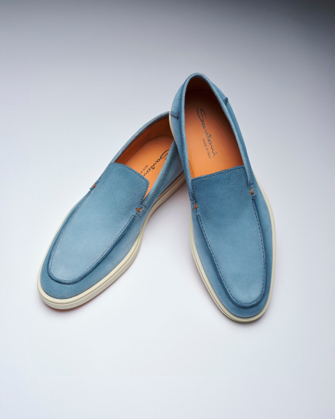 Distinguished by a delicate tapered silhouette, this loafer is dedicated to those with an understated style seeking effortless elegance even for informal occasions. Its premium suede upper and rubber sole offer a comfy, supportive feel, whilst orange details mark every stride with unmistakable Santoni attitude.